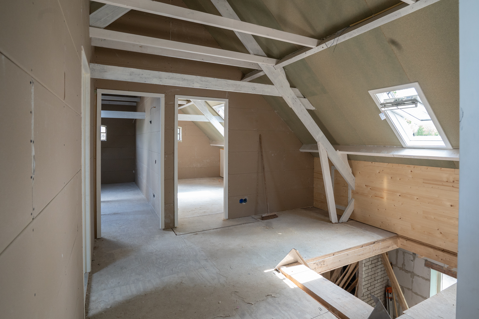 Ontbrekende fundering opgemetseld van de oude stenen van de schoorsteen die is vervangen.