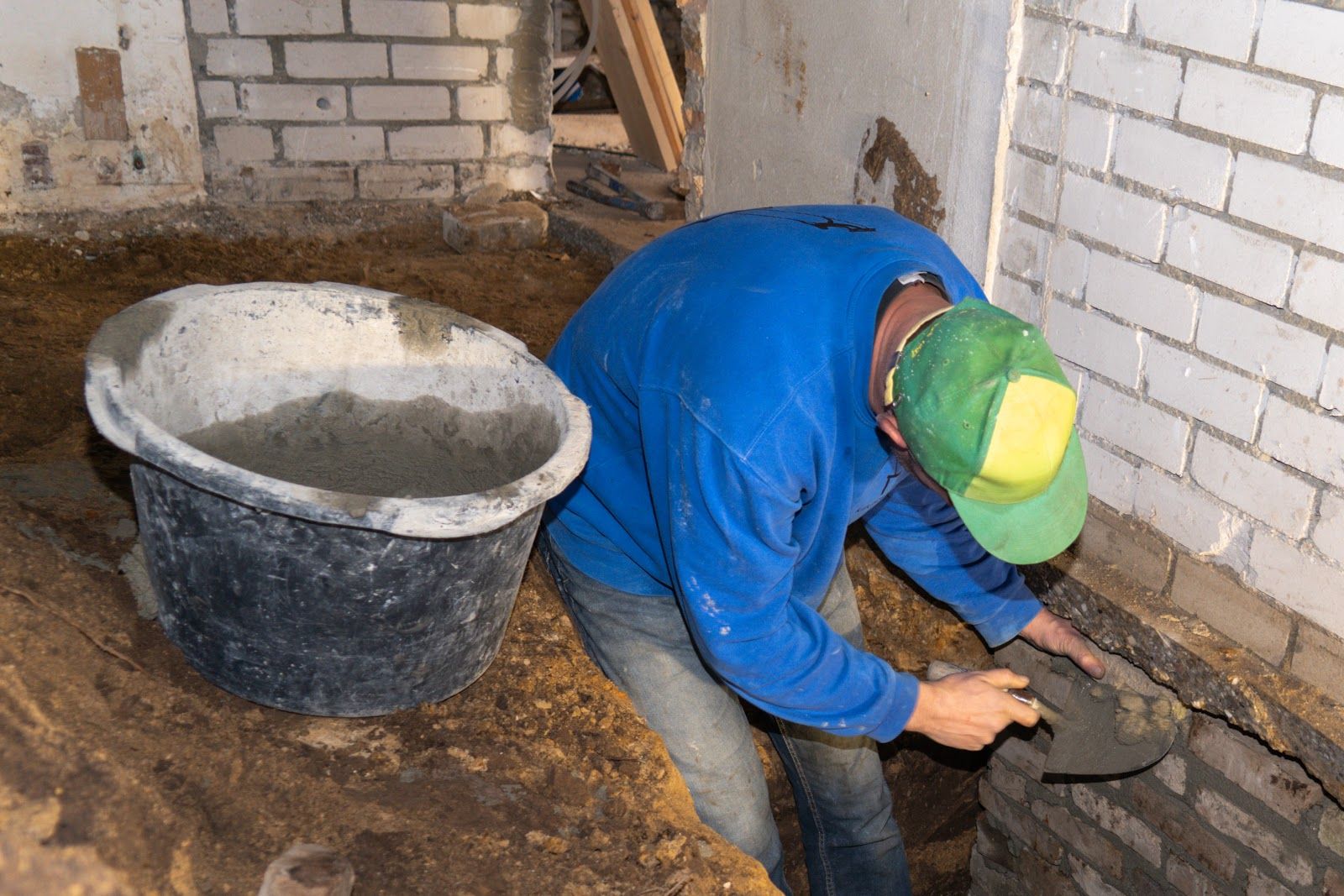 Ontbrekende fundering opgemetseld van de oude stenen van de schoorsteen die is vervangen.